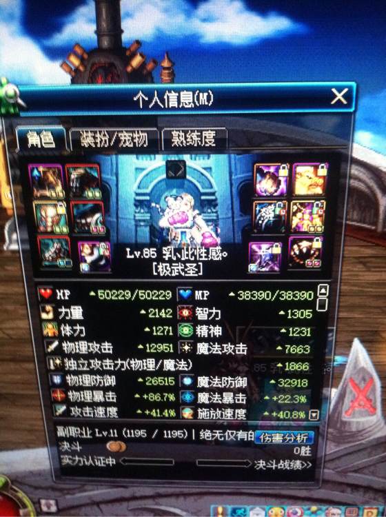 力量的确接近,不过我换武器力量高几十点,外加一张物攻卡