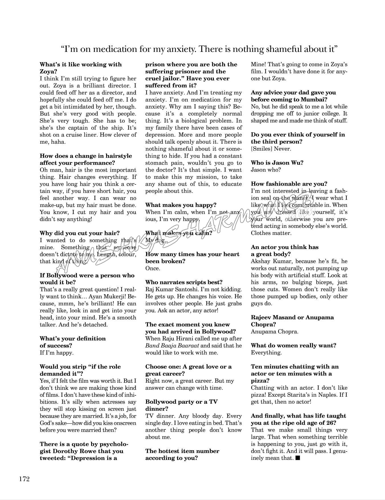 大家都知道是沙鲁克汗。沙鲁克汗会问你问题,他会让你笑,他有很棒的能量。阿米尔汗是完全专注,他工作是全神贯注。他非常安静。我比较喜欢阿米尔汗。