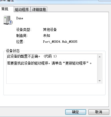当然,联系了牛蛙,牛蛙说喝酒了,状态不好,明天远程给我弄(跨年可以理解么),我就抱着死马当活马医的心情弄了。打开设备管理器,找到了ZUNE,发现了是这个状态的。