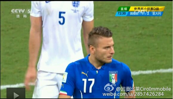 6月15日,世界杯小组赛D组首轮意大利1:2英格兰,Ciro在73分钟换下巴洛特利,首次登上世界杯的舞台。