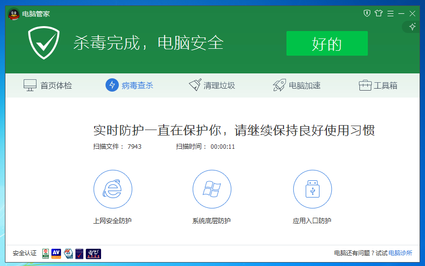 作者与你一样注重系统的安全,360及电脑管家扫描木马截图(注:系统本身未集成360或电脑管家,图为后来测试时安装的)