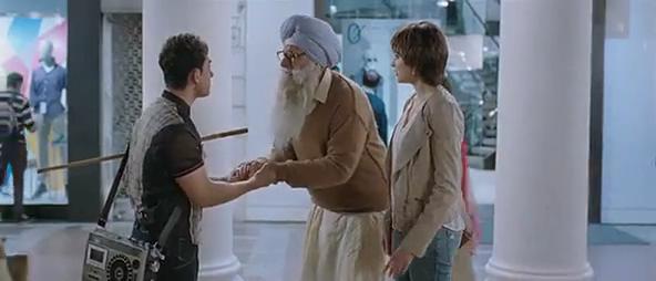 阿米尔演的是外星人,电影刚开始,他从一个UFO下来,身上唯有一个绿色发光的吊坠。他遇到的第一个人抢走了那个吊坠,而留下了海报上的收音机。刚来地球的pk从中学到了一个道理“在地球你可以拿走你看到的任何东西。”