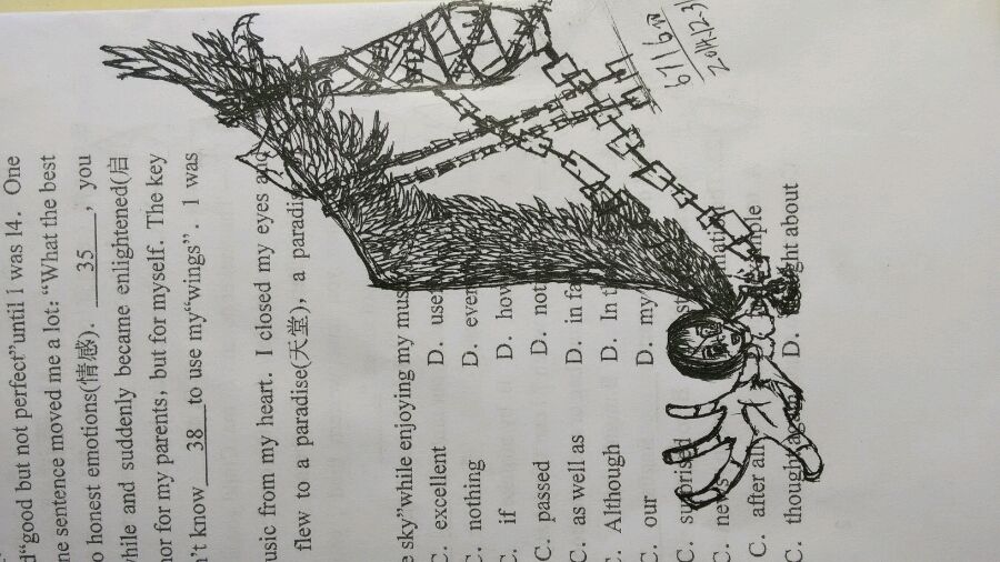 看来你是学霸啊,英语考试还有时间画这个