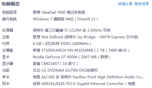 按理说Y400核显也能运行13 ,你有你的电脑的配置图吗?鲁大师,硬件大师,有截图吗?