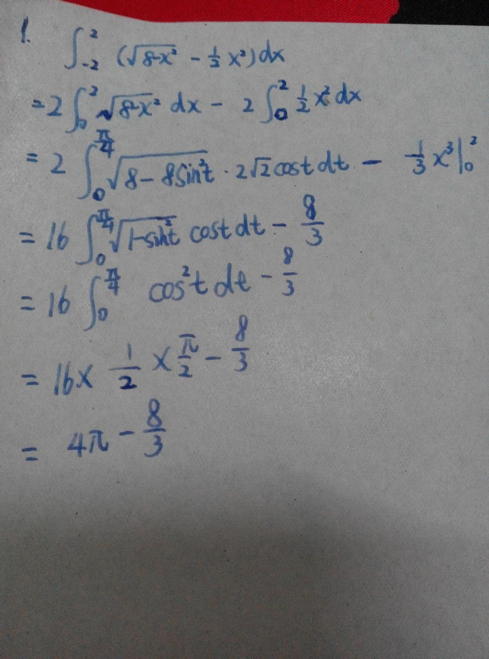 先求那个二次函数从-2到2与x轴围成的面积,再用半圆减[FACE WITH TEARS OF JOY]