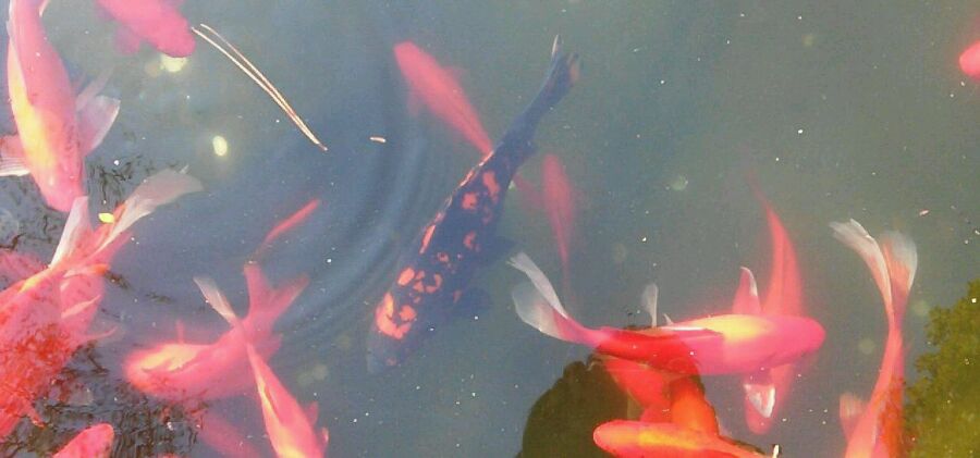 不是绯写,那些池里鱼有的很多年了,也许是红鲤和黑鲤的杂交产物,也许是什么鱼褪绯,都不太说得清的。
