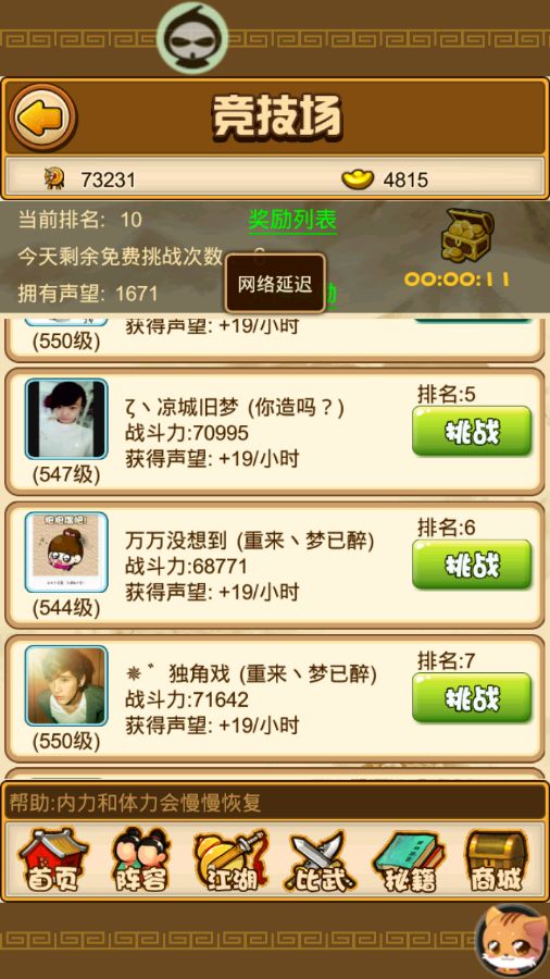 回复钰儿我的命:我光明顶不刷几次都进不了前十,卡的跟什么似的