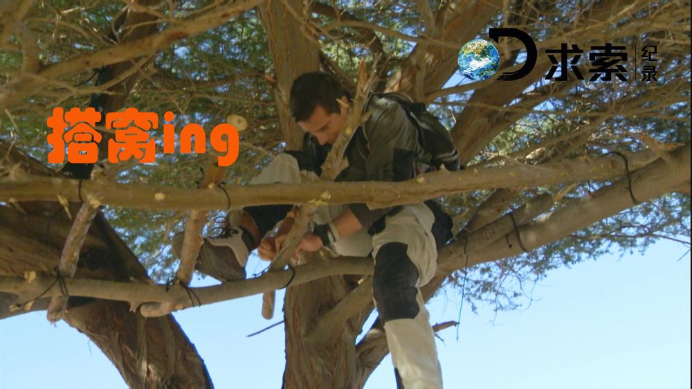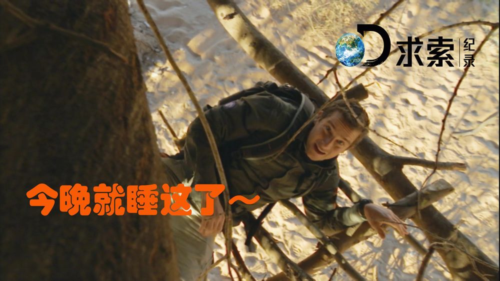 天色渐渐黑了。贝爷来到一颗金合欢树瞎,准备搭窝住宿。
