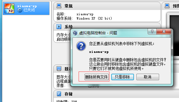 不可以的,这个选项会把虚拟硬盘和虚拟机信息一并删除,不经过回收站的。