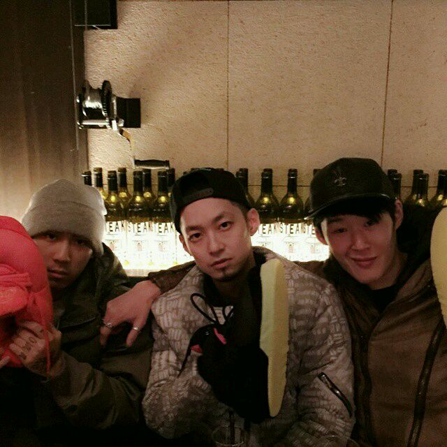 在SpaceJ,도덕拿着这么萌的拖鞋~Q好像还在那剪发了...见图中右边那人jemin1215的ins