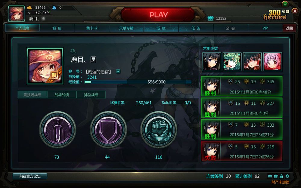 以上是我的战绩,风林火山的单排勇士(偶尔两黑),零战场,60%多的胜率。最近小圆金币化,基本每局都能见到。