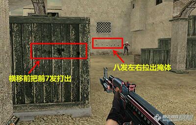 刚刚说的是普通的横移拉枪,我个人喜欢另一种打发,就是在横移之前,把开头比较飘的7发子弹打出去,这样我们拉出掩体的时候,弹道已经成一条直线了这样会更快更好的发挥泼射的威力。当然这种方法也有一个弊端,就是容易暴露自己的位置,比较适合在TD或别人已经知道你位置的情况下使用。