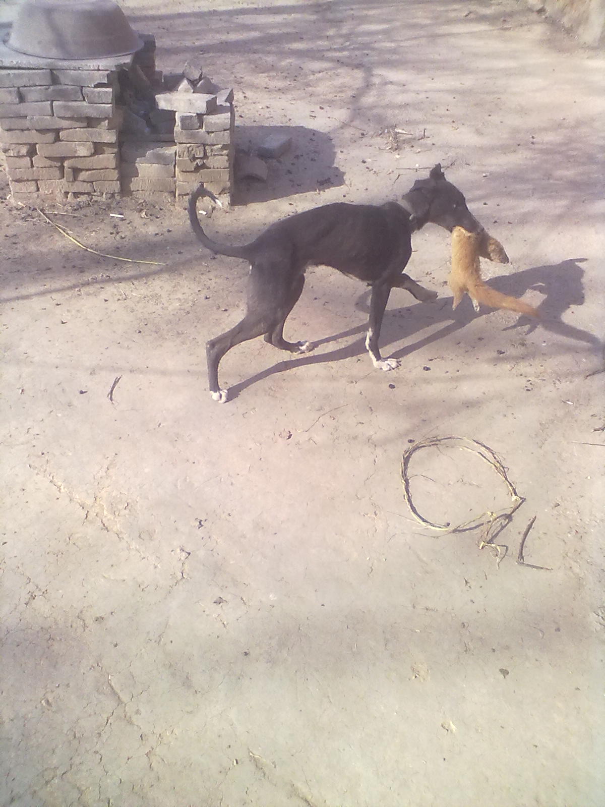 它往柴火里没跑利索,让狗给咬住尾巴了。