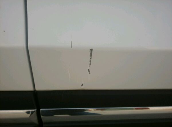 第一张图片明显是有车并排和你车停在一起太近了。开车门给你蹭的!我干过这事.