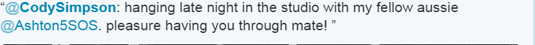 Cody之后发推说:“跟Ash玩得好开心呢!”愿5sos吧和CodySimpson吧友谊长存
