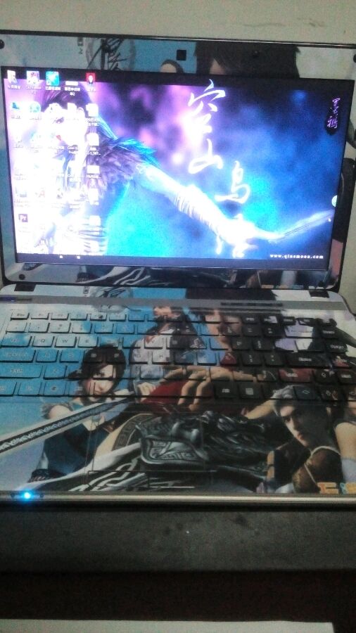 第一次发帖,求大神罩。自己在淘宝定制的电脑外壳膜,男主主题壁纸!感觉还不错,贴了一个下午!