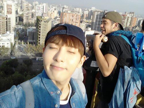 SJ和经纪人在智利比赛踢足球呢!