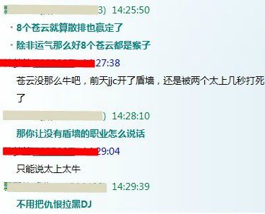 但是并没有嫌弃苍云的意思,新门派嘛总是要叼一段时间,时不时骂骂策划脑残就好了。而且我们自己也抱了苍云大腿,轻喷,只是个没有上过1400的8000分小苍云粑粑,33轻松愉快上了1600,然后开始遇到各种苍云爷爷各种跪什么的就先不提了。就是那句不带苍云你也敢打JJC?