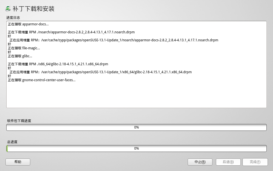 后来我实在烦了,man 了一下zypper的命令(我喜欢opensuse的一点就是图形界面的yast几乎都能搞定,不怎么用命令),每次装软件就用zypper --no-refresh in 命令,至少能省下刷新软件源的麻烦了,如果下载软件包卡的话(几乎每次都卡),就ctrl-C结束然后重新下命令。可是人的忍耐是有极限的,今天我安装更新的时候真的是疯了!!!!恨不得马上就把suse格掉装个xubuntu。