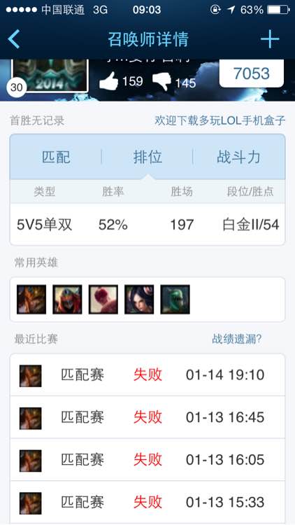 这两天被坑的惨不忍睹.差一把上钻石然后一路掉到白金二.求大神来解救我