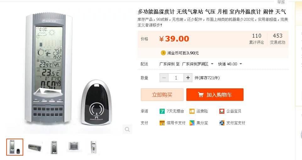 右边的就是个分体温度感应了...美中不足的是只能是温度....比起一两百的产湿度是缺失了..看在其它功能全面和价格份上.就算了...