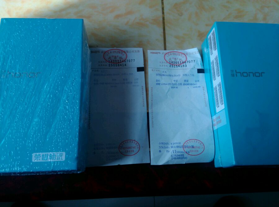荣耀puls购买价2499,华为荣耀4X购买价999,全新未拆封!