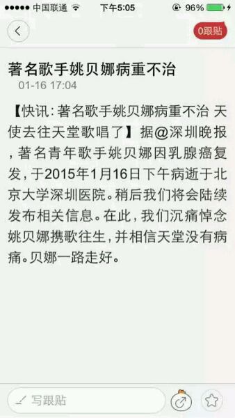 姚贝娜去世了!