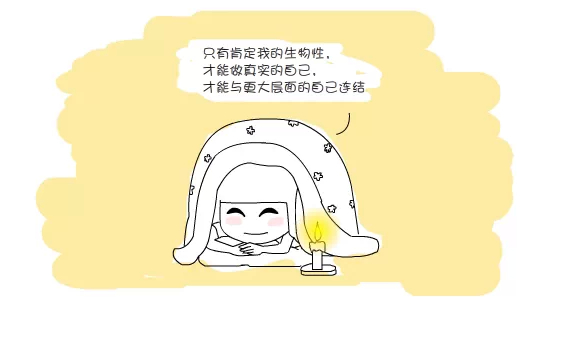 信任自己,肯定自己的生物性。冲动和攻击性都是自然的生物性,都是我们身为人所具有的。我们不应该否定这个生物性,而要求自己达到一个不可能的高度,成为一个心灵上的超人。要尊崇我们的内心给我们的讯息,应用在生活上,知道我们的思想形成了信念,信念影响了情绪,信念也指挥了自己这整个人,这是有意识的自己。