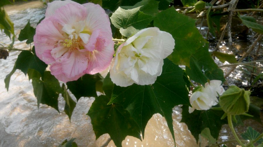 在我们那这花叫芙蓉花,开花的季节小溪边到处都是,由白而红,清新自然 我是来自东北网通一区潜龙之渊的校场霸王小慕容,无聊空虚寂寞冷的校场帅哥。