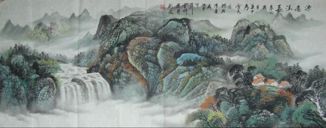 这个山水没有了 需要的话可以联系画家再现画,我再跟几幅李老师的山水,这几张小六尺的山水450转手,也就是个功夫钱,保真,大家可以去淘宝看下四尺的还卖八张,我的这几张:作品尺寸小六尺 179*69