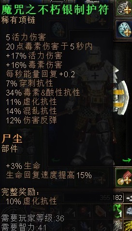 纯粹反伤是装备上直接显示XX%伤害反弹,这种伤害反弹就比较牛B了,PK场合非常实用,这种伤害反弹目前可以直接反弹任何伤害、诅咒、就算对方攻击miss了,伤害一样能反弹到对方身上,这点就是纯粹反伤的变态之处,而且这种反伤是无法躲避,忽略抗性的。目前就法师有个技能能反弹伤害,3秒持续,15秒CD,最高能反弹到200%多伤害吧,之前跟吧里战士PK,我法师开启这个伤害反弹,战士砍我几刀他自己就挂了。除了法师职业有纯粹反弹伤害,像我战士就得撑装备了,不过目前看来,这块还是很有发展前途的。下面晒晒我收集的几件纯粹反伤装备: