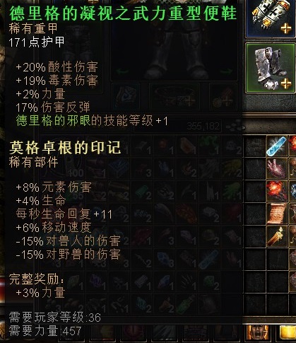 Monster9530战士就是我的主号,之前本来用双手武器,前期用0CD气功波打,刷怪还行,就是30来级的时候打精英和boss老费劲了,后面洗成反伤T,个人攻击虽然差了点,但是反伤却是很变态,跟我PK过的同志都知道反伤战士的厉害,不过现在级别低,点数不够,后期如何还不太清楚,至少现阶段反伤流还比较无解,下面发几张我收集到的纯粹反伤装备。