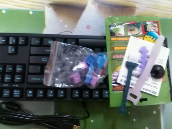打开包装盒,里面就是一些赠送的东西,还有保修卡,咦,说的送的那10个键帽呢?