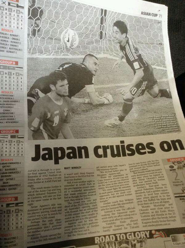 昨天的比赛之后,香川在日本国内的报纸上占了一个彩色整版,同时在澳大利亚的报刊上也和同日在澳网获胜的锦织圭一起出现了。