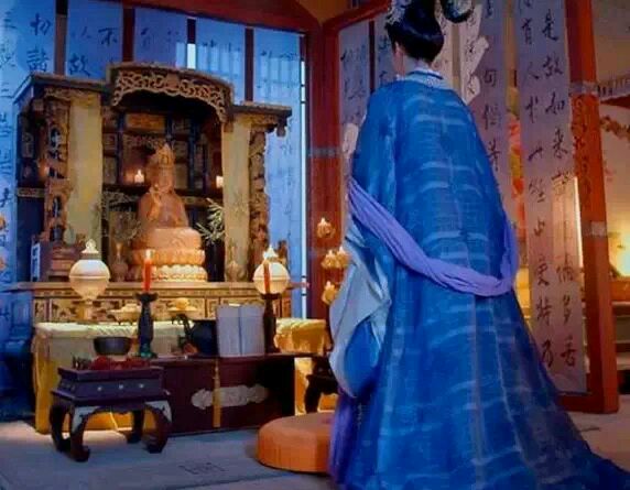在图的左侧有一具书架,上面放满卷轴,这个书架(或称画架)造型简单,观察其材质像是斑竹,架子离地很高,应是为了防潮。与后世的柜式书架不太相似。