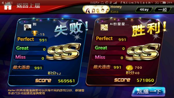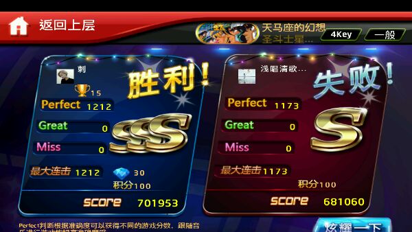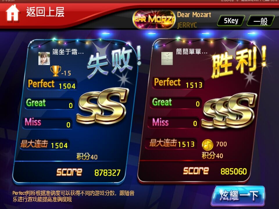 对手最大连击*600-22740得到的分手和对手分数一样,就是满分。如果漏键,这时就是已打击键满分。