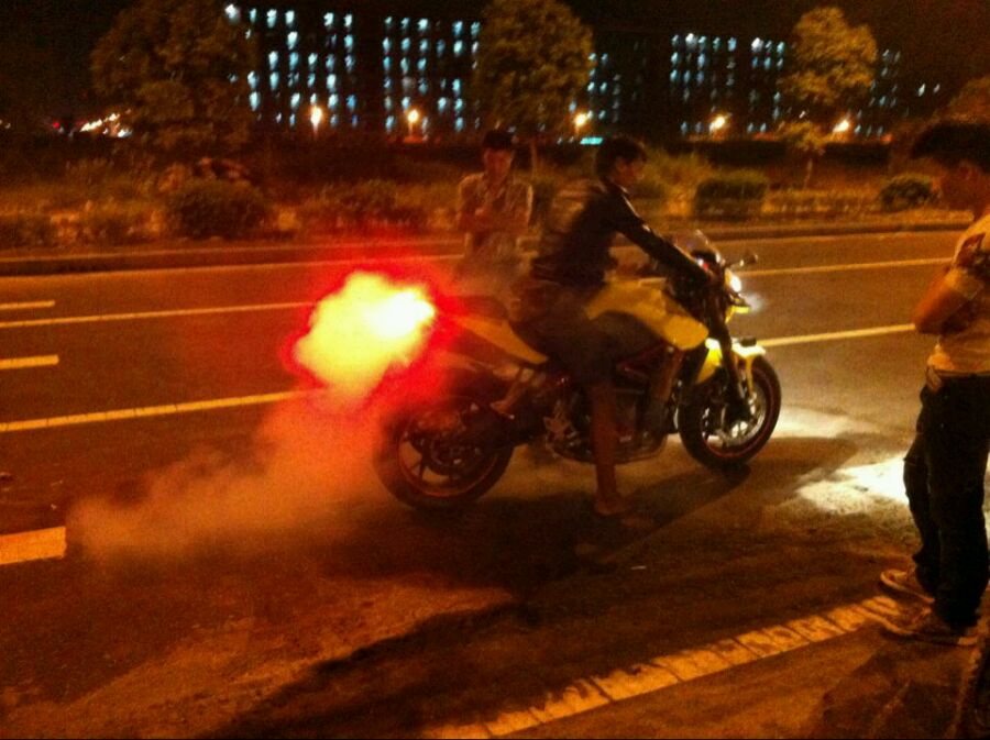 那是灯光效果,我后轮原地烧胎,烟起来的时候灯光一射就好像着火一样
