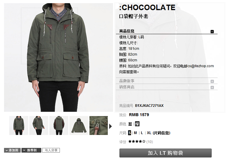 【全新代购】chocoolate 新款 连帽加绒外套 4.5折 710 包申通