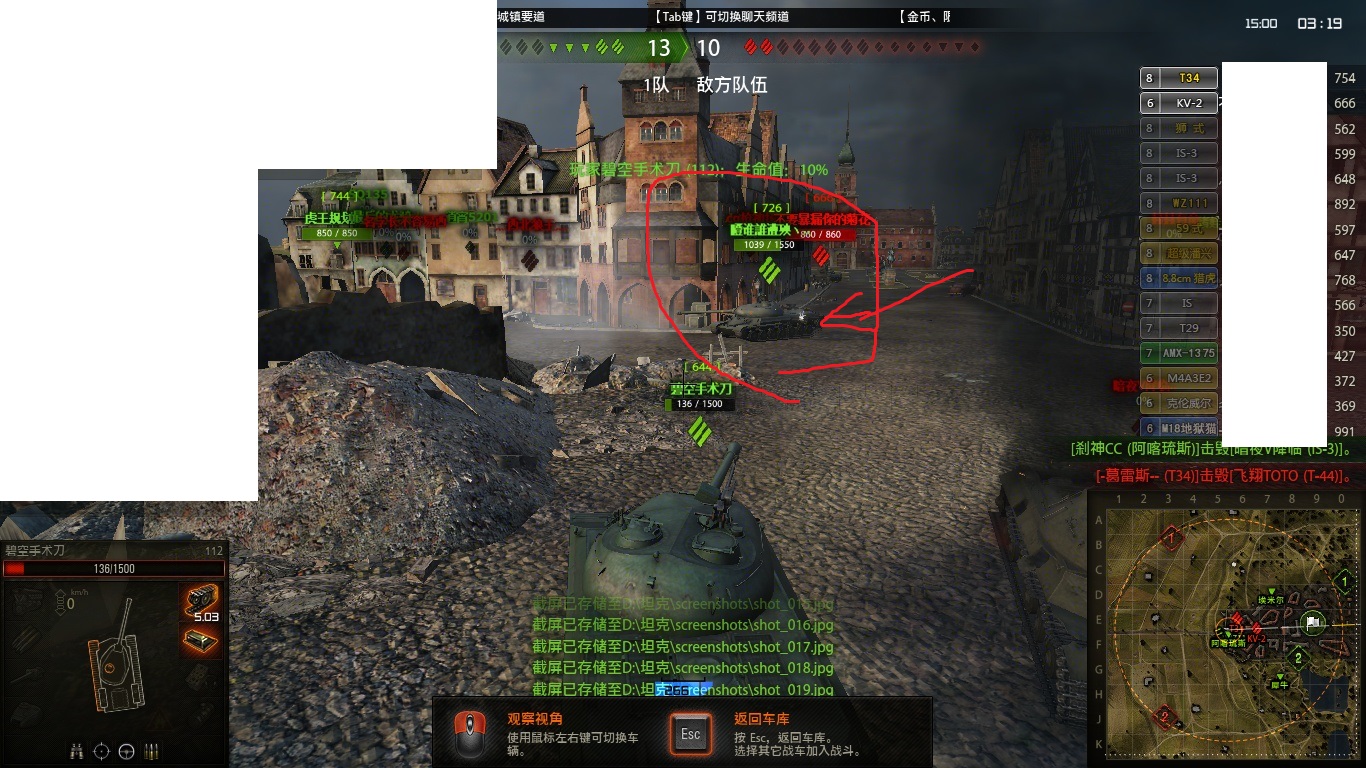 直接打到了队友的身上,(经过反复看录像,确实是一炮打了队友身上了,话说这个112到底瞄准不瞄准,从这个角度看敌人露出的部位还没队友多)不得不感谢中国车好,侧面跳单了