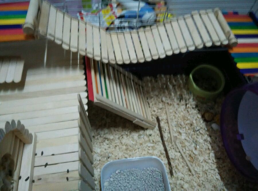 除跑轮,食盆,屋子,笼子,浴室,厕所外都是自己做的