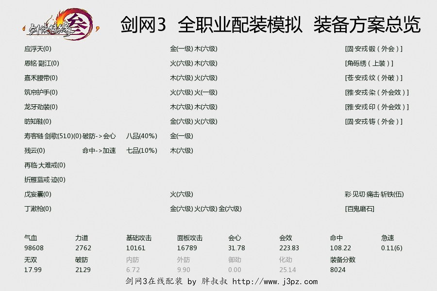我按照你说的配了一下,标准附魔,插六级五行石,会会破五彩石,精炼满,不洗练,属性是:
