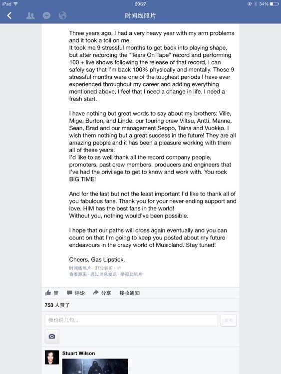 真的。。昨儿facebook him官博和Gas自己的账号同时po的