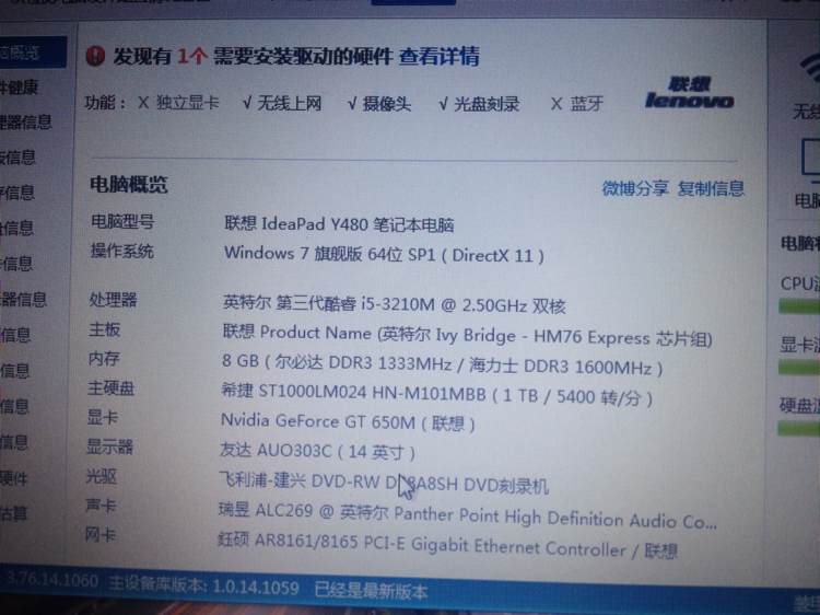 今天突然发现鲁大师告诉我这个,为什么?无独立显卡?那650是什么~