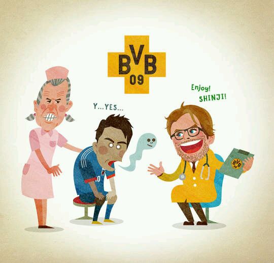 多特蒙德病院的克洛普医生,给香川开出了复活特效药。猜猜旁边的护士是哪位?………[吐舌]