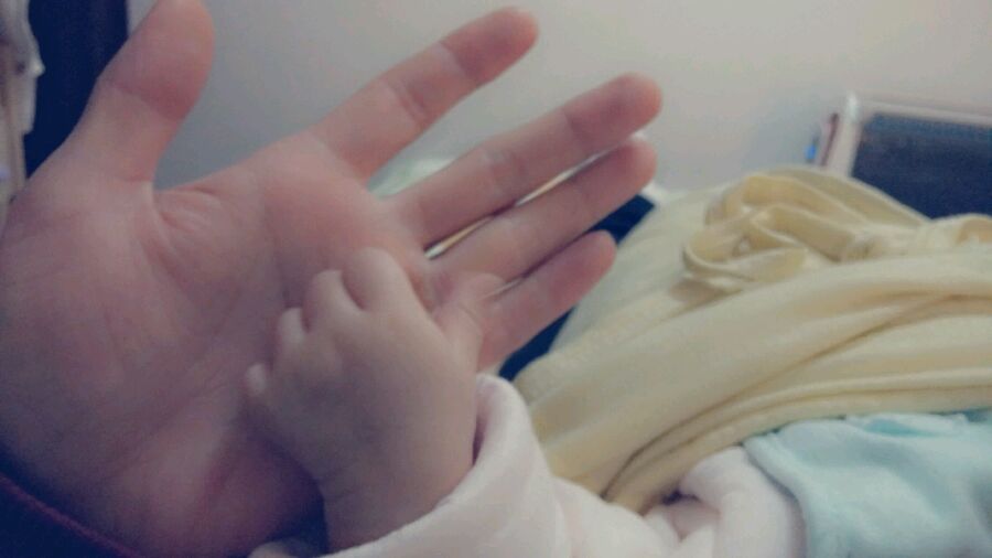 是啊!刚才和她拍手玩!看着大手小手好乖!就拍了几张!