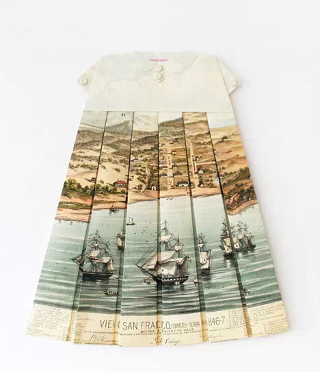 伦敦艺术家ElisabethLecourt毕业于英国著名的皇家艺术学院,她发挥女性的复古浪漫情怀,用各式年代的旧地图折出了名为“Les RobesGéographiques”的系列百褶裙。