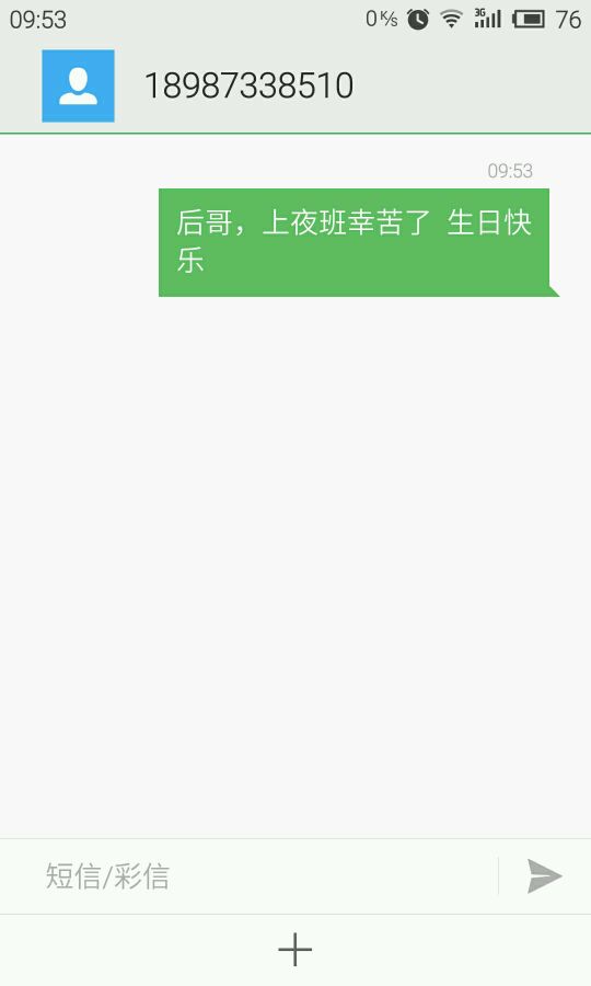 今天我男朋友生日,想请吧友帮忙发条祝福短信内容是:后哥上夜班辛苦了,生日快乐!