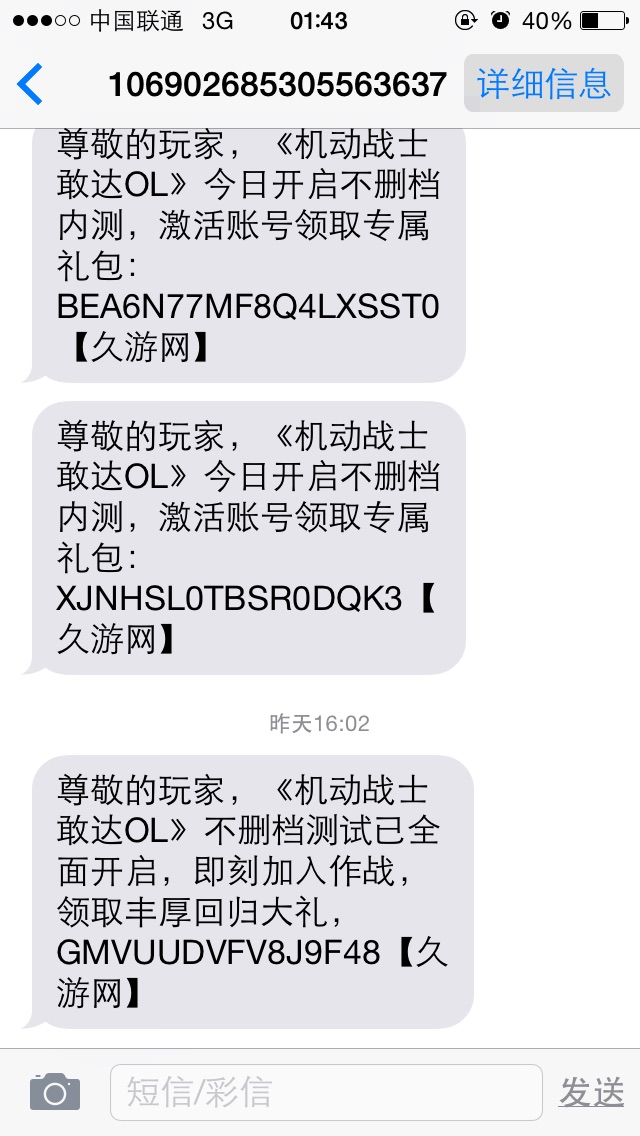 事情s这样的,Lz的一份工作,为了工作Lz连Sd都少玩了,然而,9U发了好几次激活码给Lz 因为Lz工作已经两个月没工资发了,9u 每发一次激活码短发Lz都会有一种错觉以为 卧槽,工资终于到了!然后每一次看到竟然是鸡和马,那一刻的感觉,心都碎了
