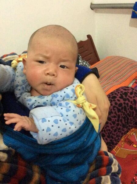 给儿子剃了个光头。