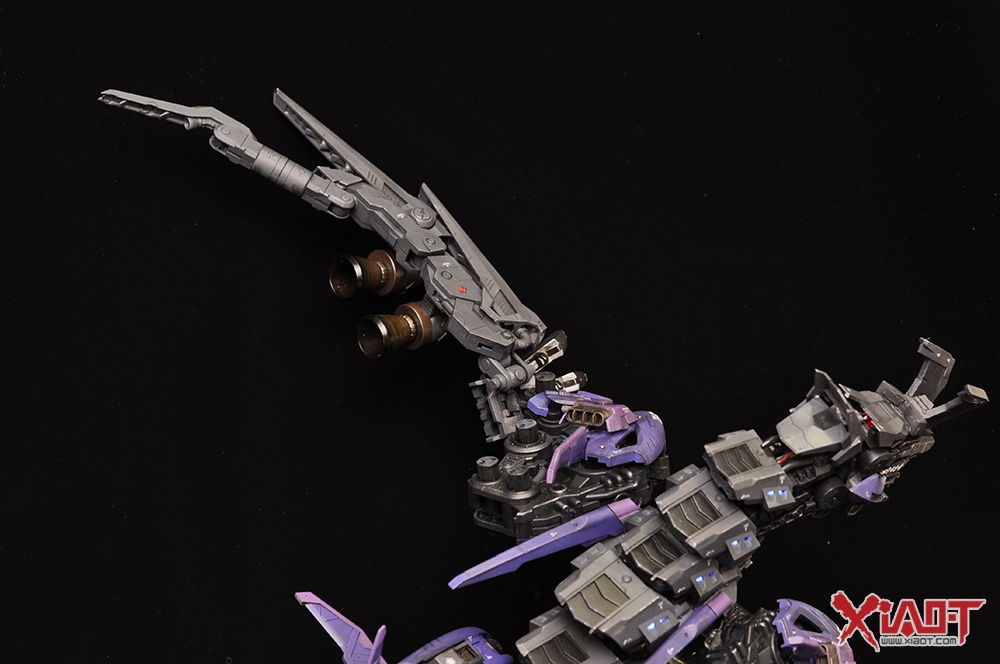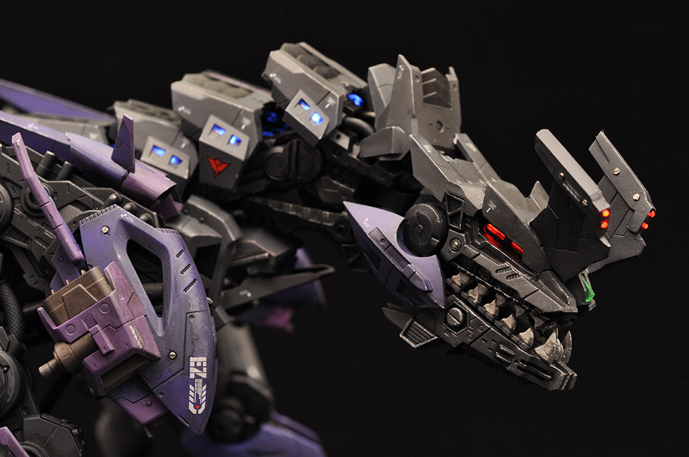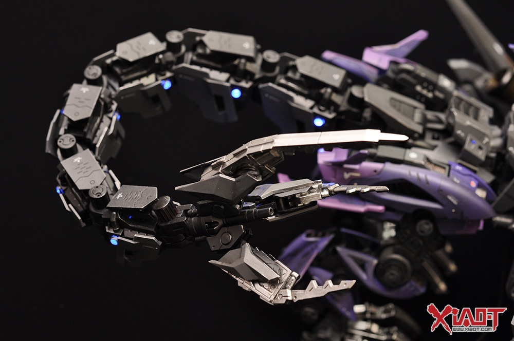 日站玩家キノ参考电影《环太平洋》中的4级怪兽Otachi(铁尾)使用HMM狂暴战龙搭配HMM猎鸥型长牙狮零式制作了此模型,并在眼部、头上的角、口部的荷电粒子炮和身上添加灯饰提升效果,详情请看